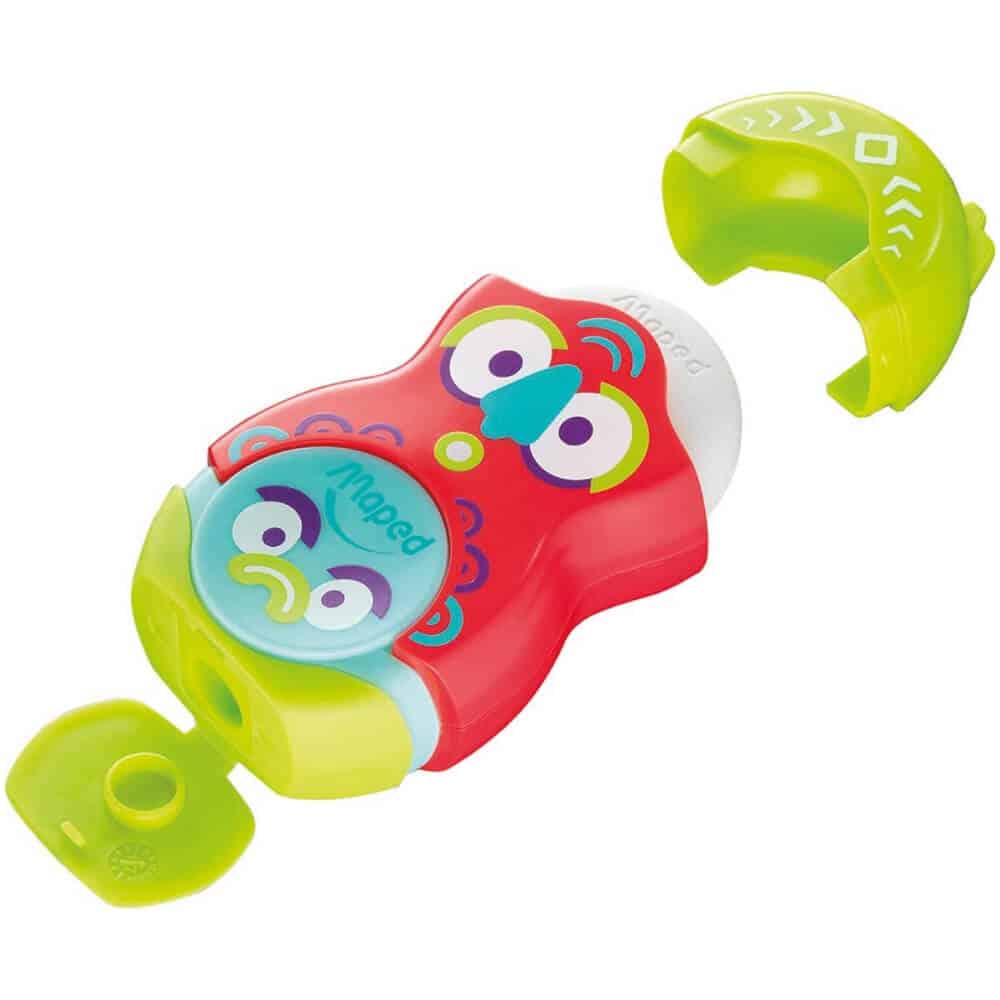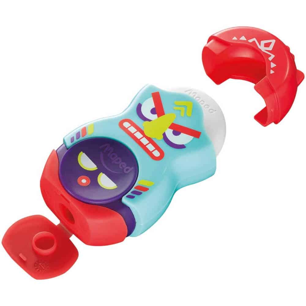 - Sacapuntas de 1 agujero con bote y borrador, ambos con tapa protectora.