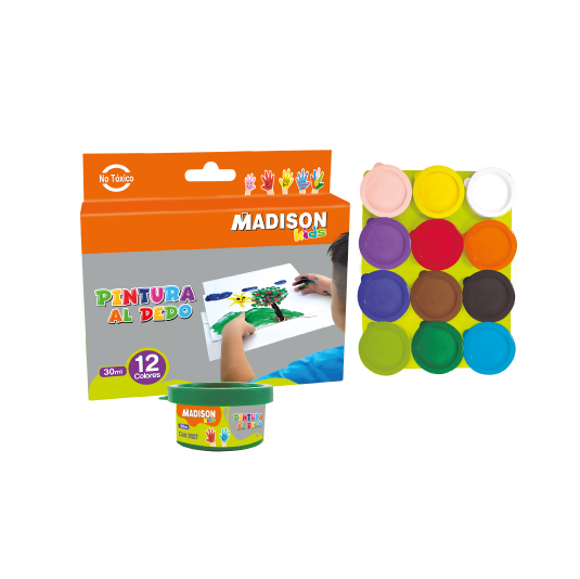 Caja de Pinturas al Dedo, para Dedos, Set de 12 Frascos MADISON