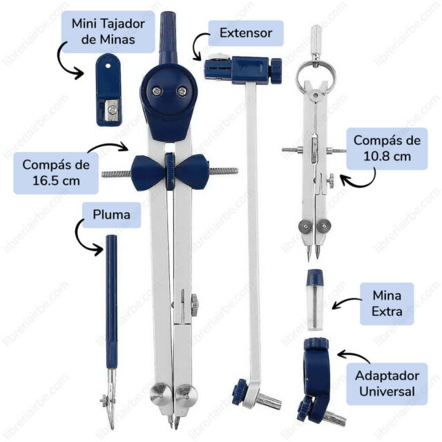– 2 compases profesionales de metal.