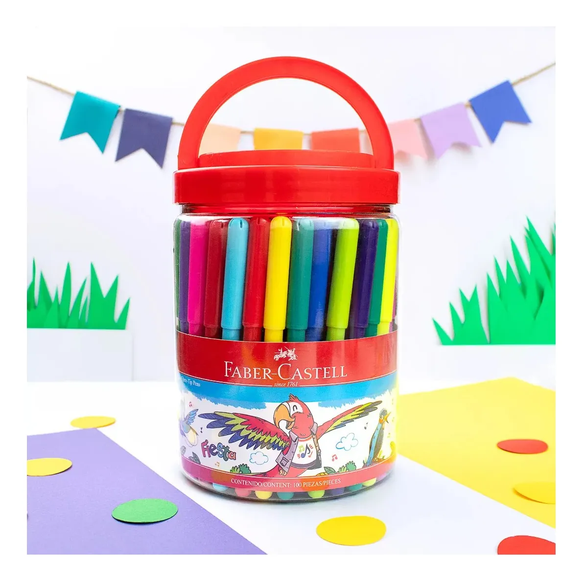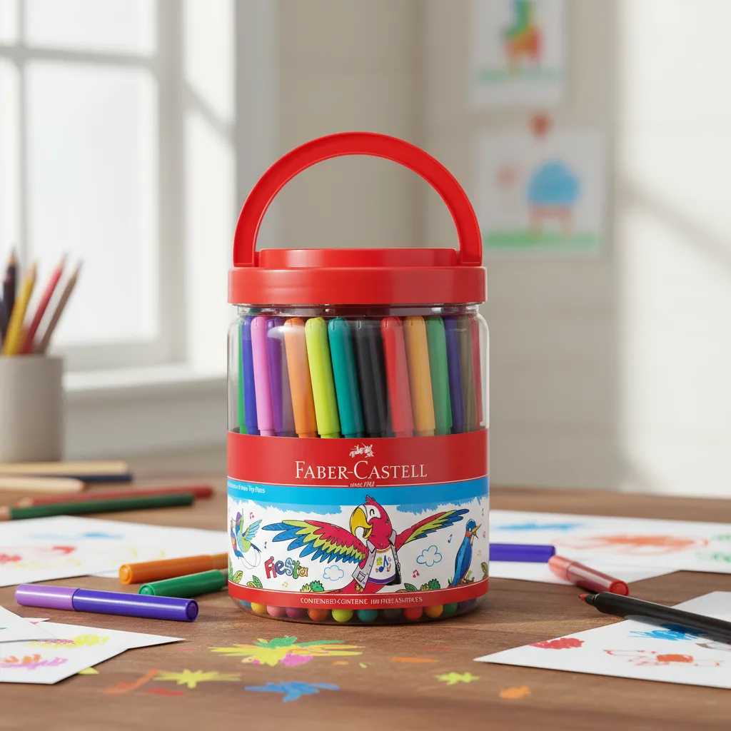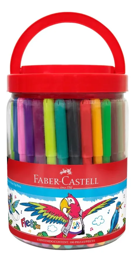 Marcadores Escolares Faber-Castell Fiesta, Lavables, Punta Fina, en Balde, Set de 100 Colores