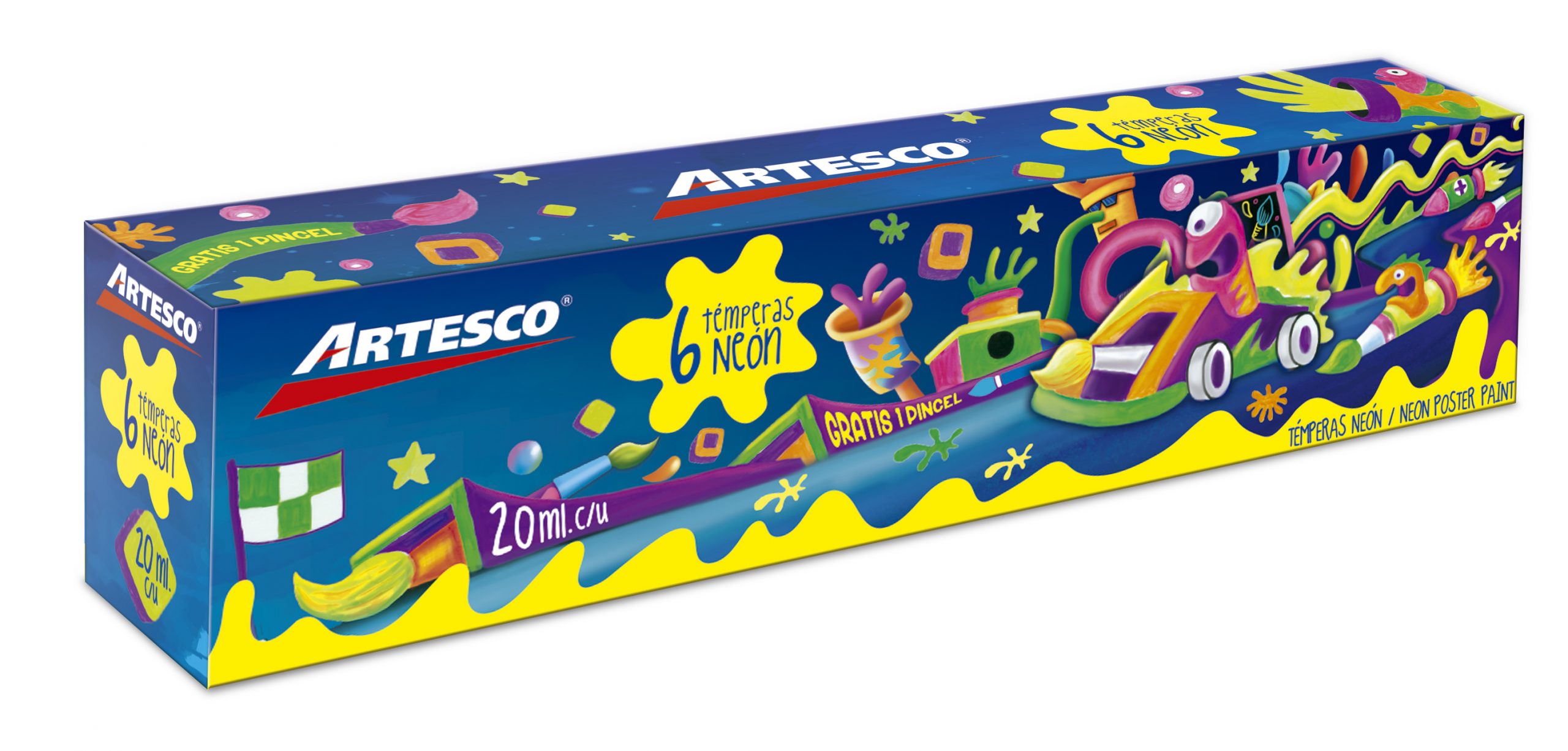 - 6 potes plásticos con 20 ml cada uno, colores surtidos.